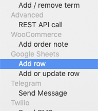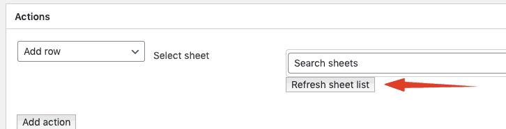 Last part of the workflow is to set up the action. Scroll down to the actions part of the workflow editor. Click ‘Add action’ and select the Google Sheets – Add row action: