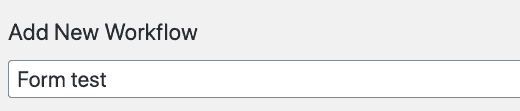Once the Workflow editor is visible we need to set a nam, we’ll call this “Form test”: