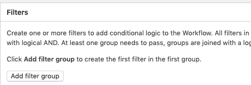 In the Filters section of the workflow editor, click ‘Add filter group’: