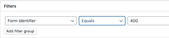 Select ‘Form identifier’ as the first filter and select operator ‘Equals’ and enter the number 400: