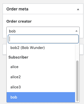We’re going to create a new field group named “Order Meta”. In this field group, we create one single field of the type “User”. We’ll label the new field “Creator”