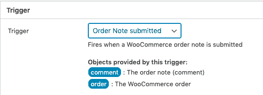 We’ve also added a specific trigger for order notes that emits an Order object instead of a post object. This means that all filters and parameters what normally work with orders are also available for order notes.