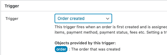 We’ll trigger this workflow when a new WooCommerce order is created: