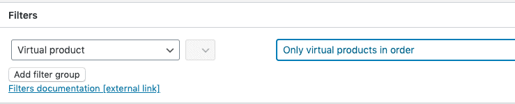 To raise the bar a little bit, we’re going to use one filter in this workflow. We’re only going to run it if the order consists only of virtual products. We do this to show the power of WunderAutomation to trigger a Zapier zap. With most other tools that can send a webhook to Zapier, this level of control simply isn’t possible.