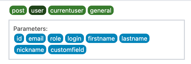 - Blue pills indicates parameters (just as before)